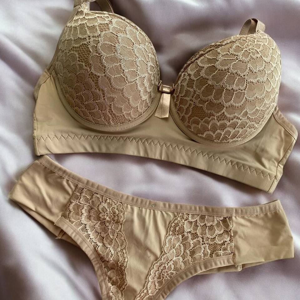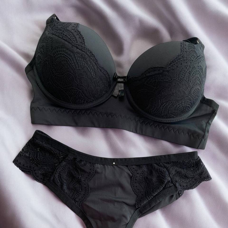 Conjunto encantador confeccionado em tecido de poliamida com delicados detalhes em renda que trazem charme e sofisticação. O sutiã possui reforço para maior sustentação e conforto com fecho de pois pontos, enquanto a calcinha fio duplo garante ajuste perfeito e segurança com laterais e parte de trás em tecido duplo.
